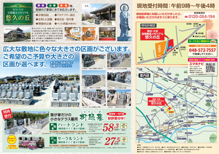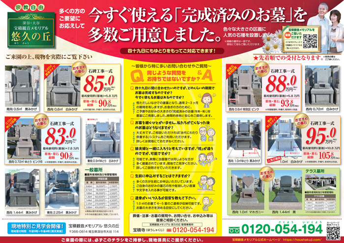 「宝積観音メモリアル 悠久の丘」では、慣習にとらわれない祭祀者の多様化に適応し、みなさまの心配や不安を取り除き安心に変えられるよう、様々なスタイルの供養をさせていただいております。
